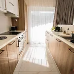 객실은 부엌뿐만 아니라 업무 데스크, 커피 및 티 메이커, 휴게실도 갖추고 있습니다. 개별 변기, 샤워도 제공됩니다.